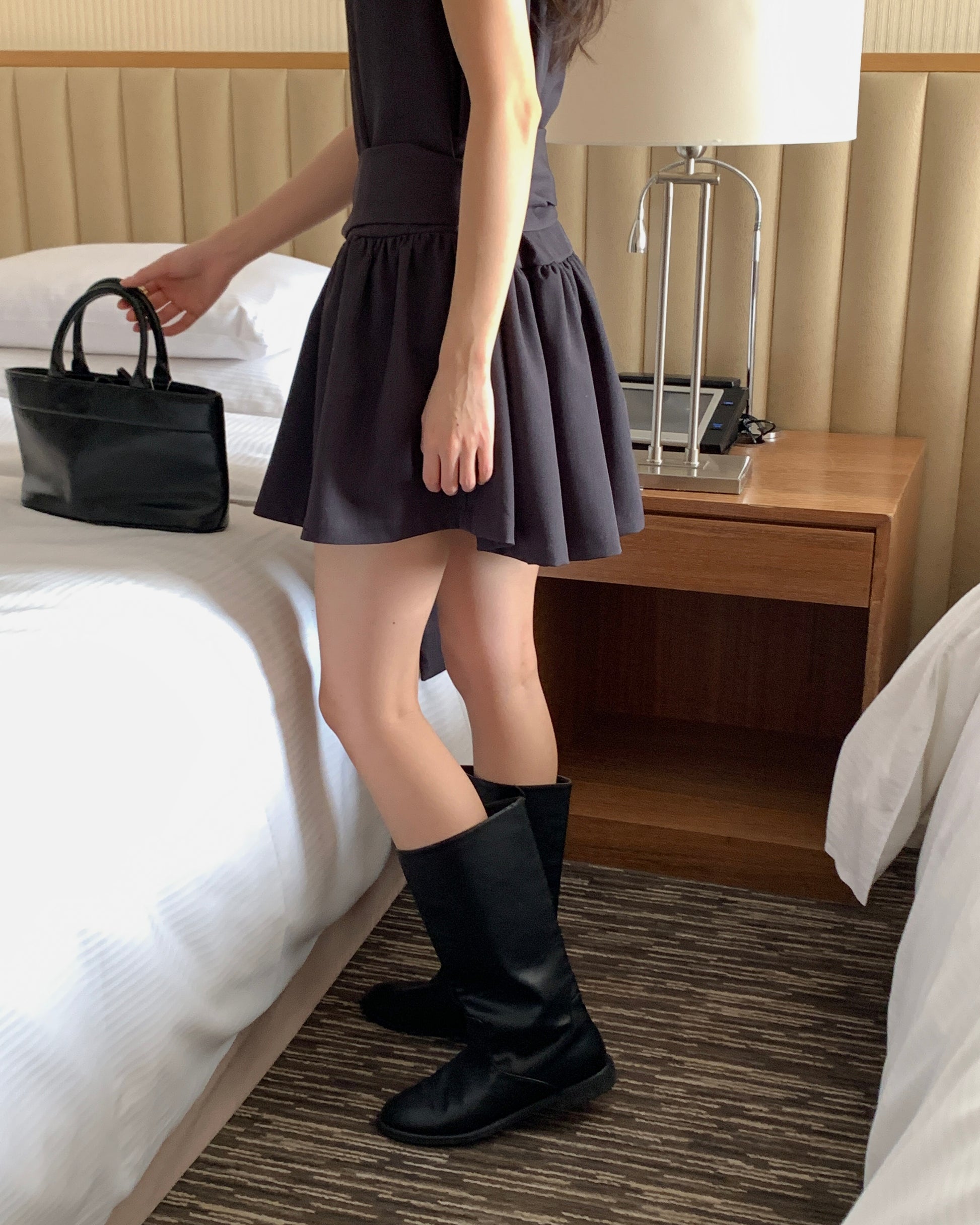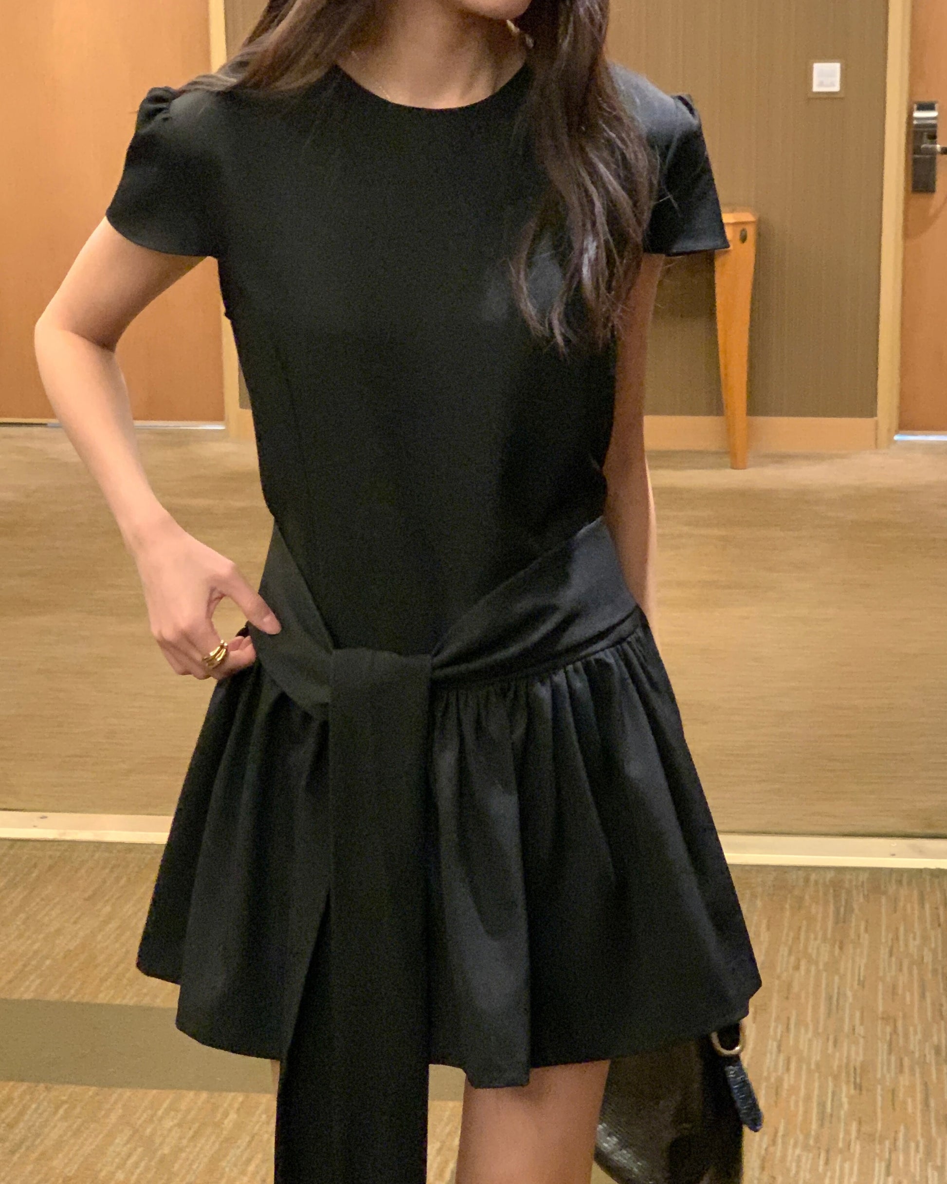 Elevate your look with this chic Bold Sash Mini Dress, featuring a sleek round neckline, delicate puff sleeves, and a striking oversized sash tie that wraps dramatically around the waist, cascading into an asymmetric flow for a modern twist. The flattering peplum-style skirt adds playful volume while keeping the silhouette feminine and effortless.