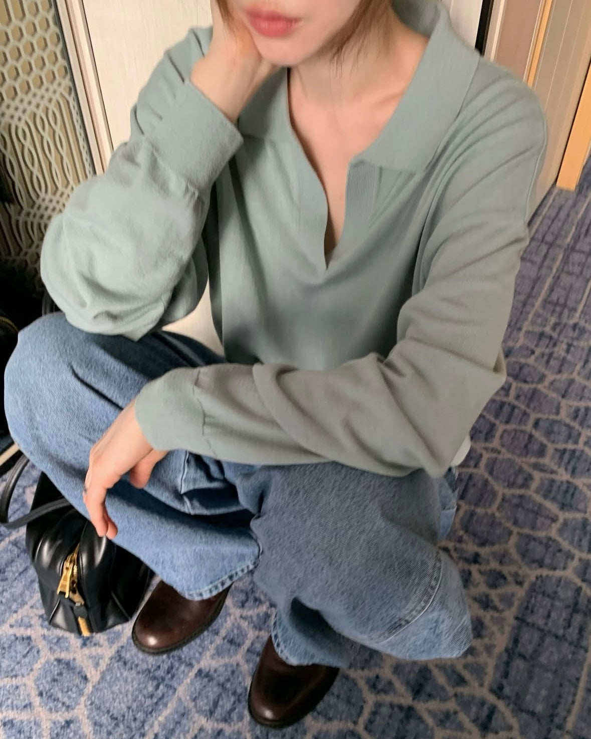Elevate your everyday look with our Collared Knit Polo, a relaxed essential crafted from soft, breathable knit fabric. Featuring a classic polo collar with a subtle open neckline, and ribbed cuffs and hem, it offers effortless comfort and subtle sophistication. Perfect for layering over jeans or styling solo for that effortless, modern vibe.