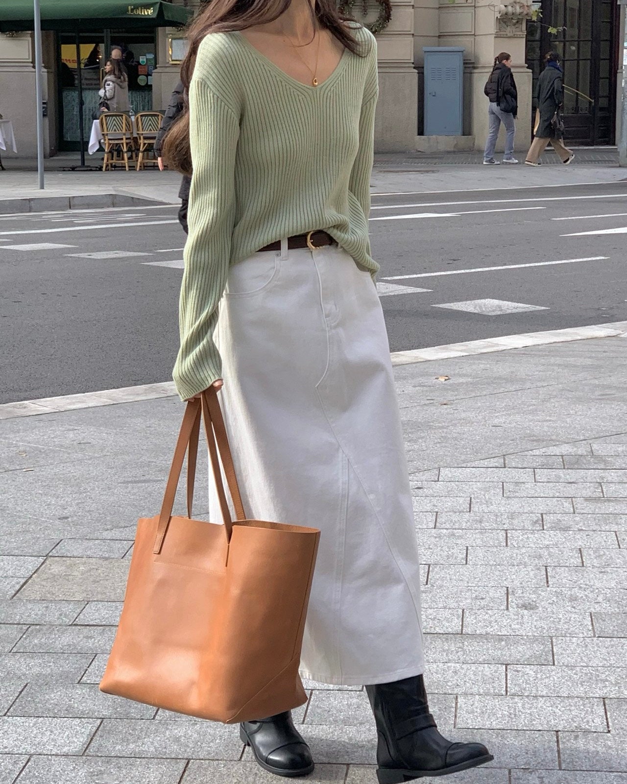 This soft, stretchy ribbed knit pullover features a flattering deep V-neckline that adds subtle allure—perfect for layering or wearing alone with a delicate necklace. The slim-yet-comfortable fit, long sleeves with ribbed cuffs, and lightweight fabric make it an effortless essential for transitional seasons. Pair it with high-waisted pants and a tote for chic everyday style.