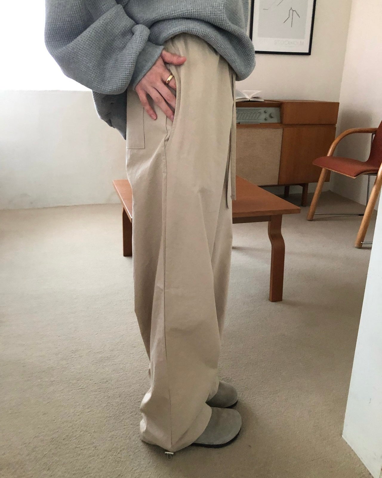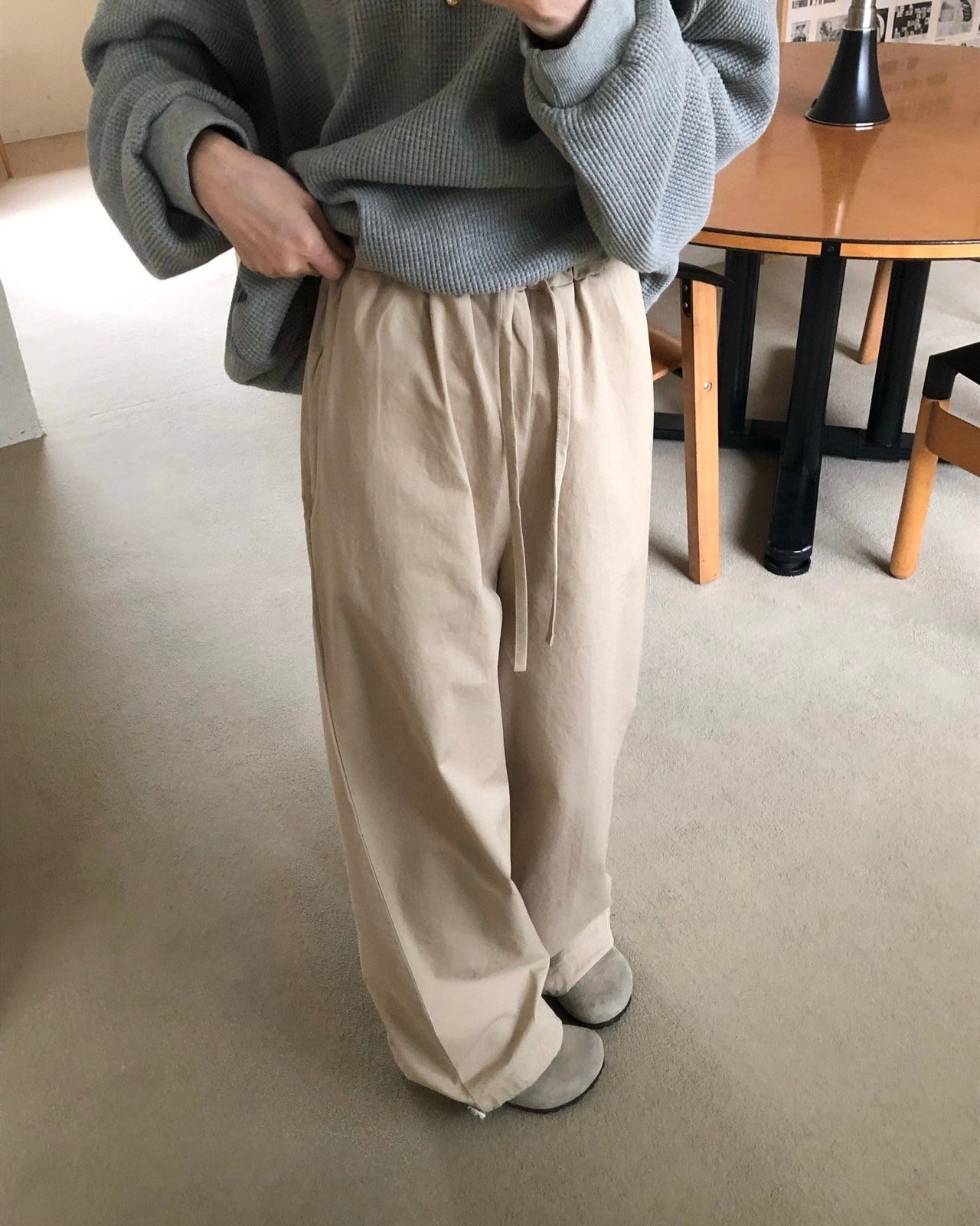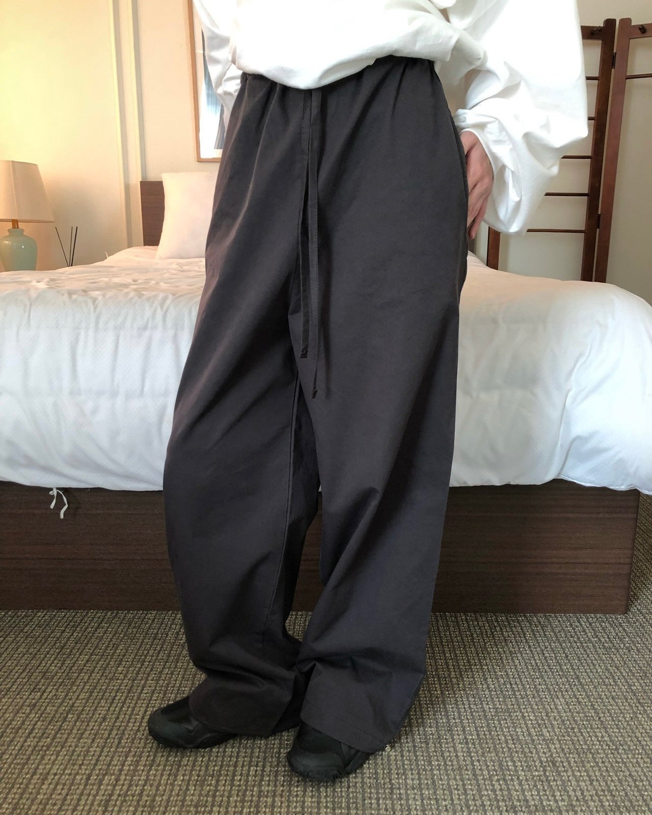 Drawstring Wide Leg Cotton Pants