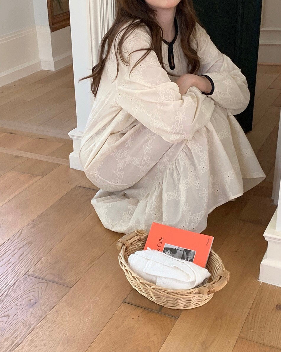 Indulge in comfort and elegance with our Floral Embroidered Sleep Dress. This beautifully crafted piece features delicate floral embroidery and a chic black trim, perfect for a restful night's sleep or a cozy day at home. Made from lightweight, breathable fabric that feels refreshingly cool against the skin, it offers a relaxed fit with a touch of sophistication.