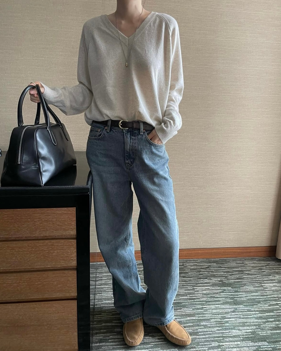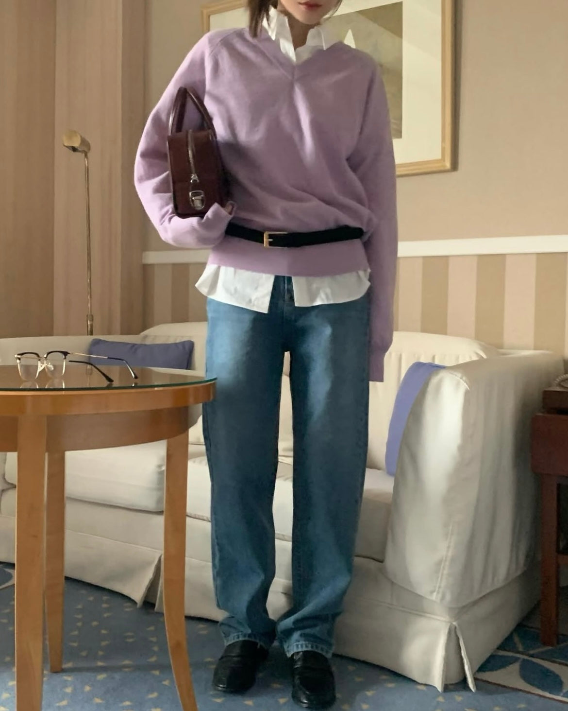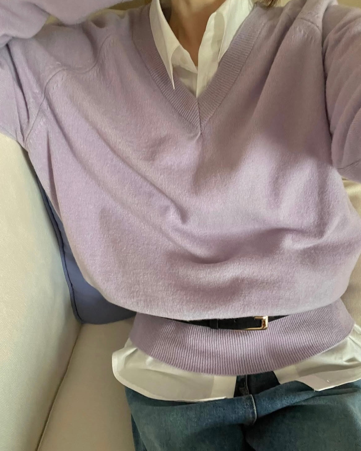 Slip into effortless warmth with the Hush Loose Wool Knit, a relaxed V-neck pullover with a deep neckline, light coziness, and subtle texture. Perfect layered or solo.