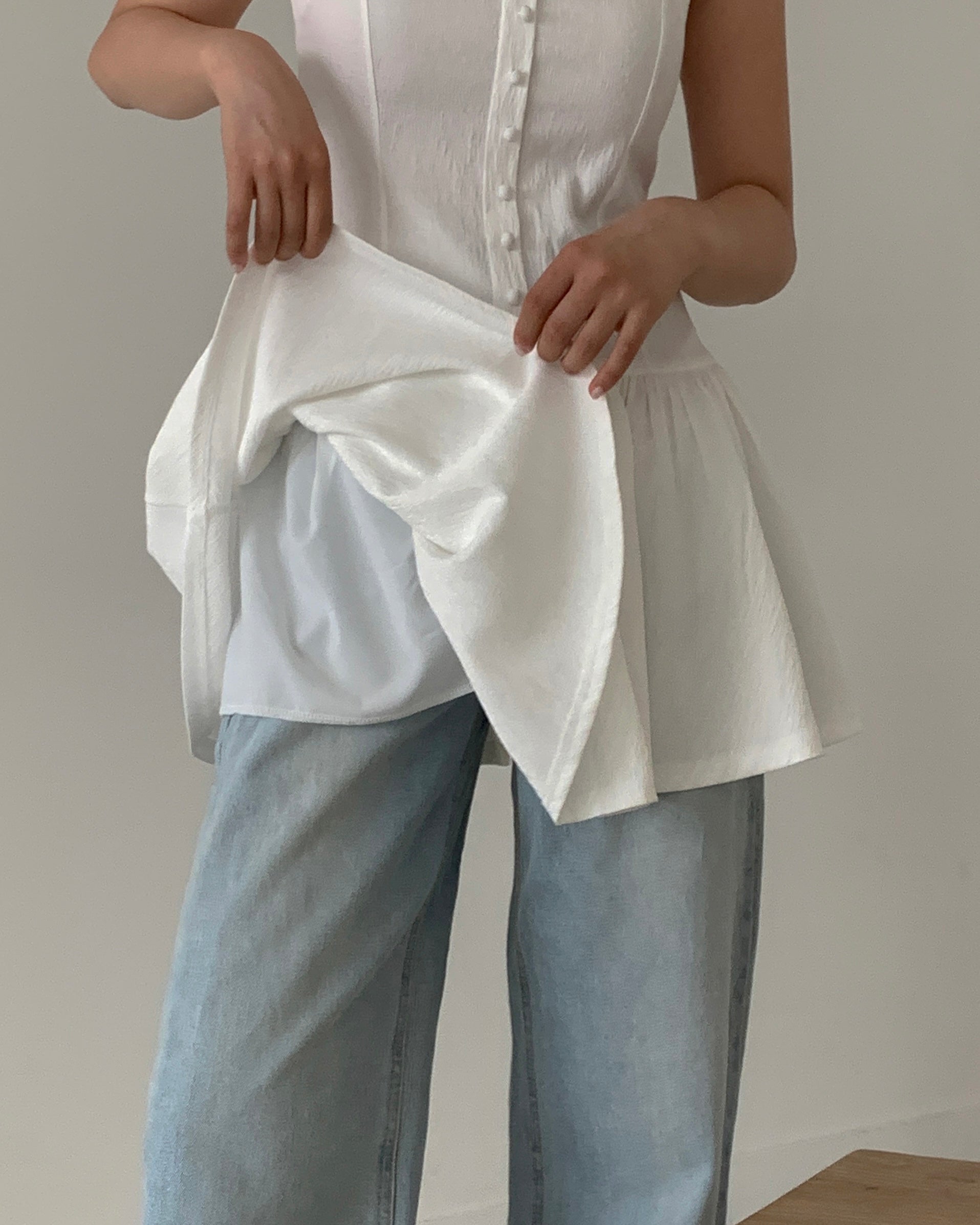 Elevate your everyday style with this effortlessly chic Jacquard Peplum Mini Dress. Crafted from luxurious textured jacquard fabric, it features a flattering sleeveless silhouette, classic button-front detail, and a playful peplum hem that adds feminine movement and subtle volume to the waist. The soft A-line mini length offers a fresh, modern vibe. Perfect for brunches, casual dates, or layering with boots for transitional seasons. Timeless yet contemporary, this dress brings refined elegance with a touch of whimsy to any wardrobe.