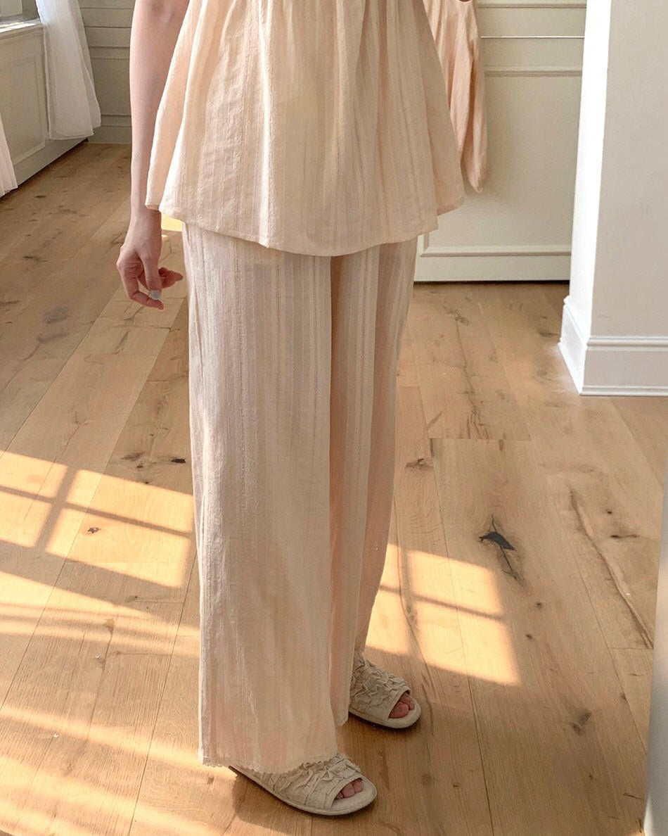Experience breezy sophistication with our Linen Cami Cardigan Pajama Set. Made from ultra-lightweight, breathable linen fabric that's naturally textured and perfect for warm weather lounging. The set features a cami top with built-in chest pads and delicate lace trim + bow accents, a relaxed button-front cardigan overlay, and wide-leg pants with side pockets and lace hems. Pure airy comfort!