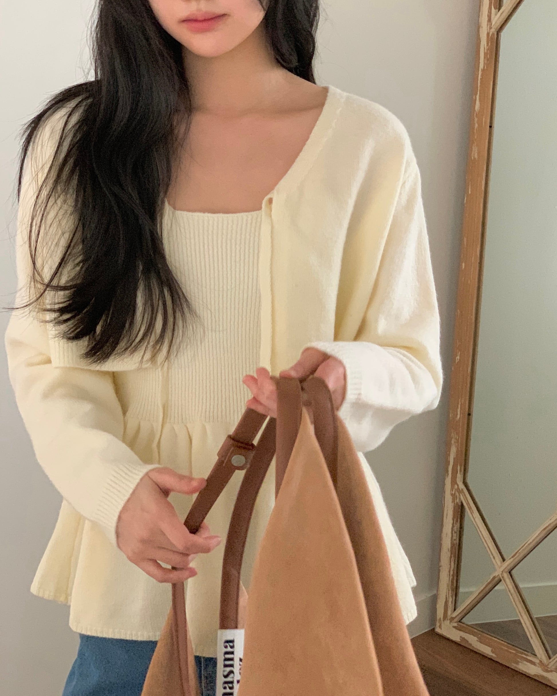 Elevate your everyday look with this soft and cozy Peplum Cami Crop Set. Made with a warm wool-blend knit, this two-piece set features a charming peplum cami that gently flares at the hem, paired with a lightweight cropped cardigan for effortless layering. Wear the pieces together for a feminine, balanced silhouette—or style them separately for endless outfit options.