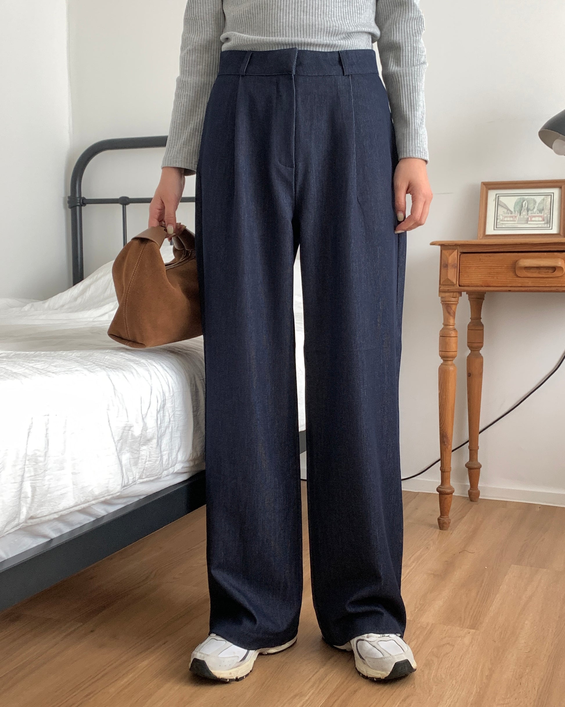 Pleated Wide Leg Indigo Trousers