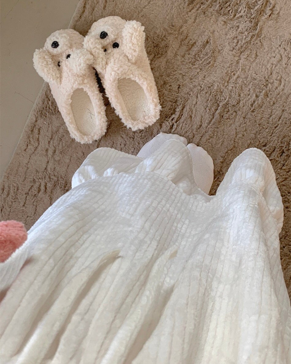 Featuring a big sailor collar and bow tie, this dress not only adds a touch of cuteness, but also provides warmth and comfort. With a stylish bottom ruffle design, this set is perfect for cozy nights in.