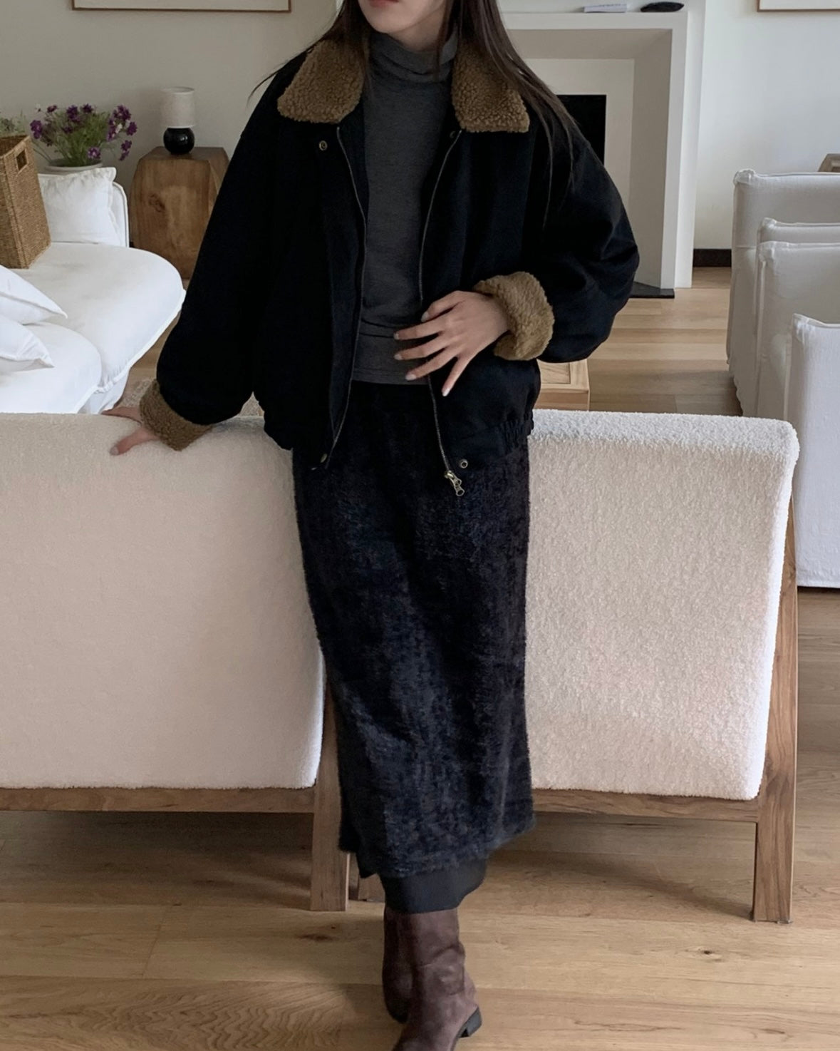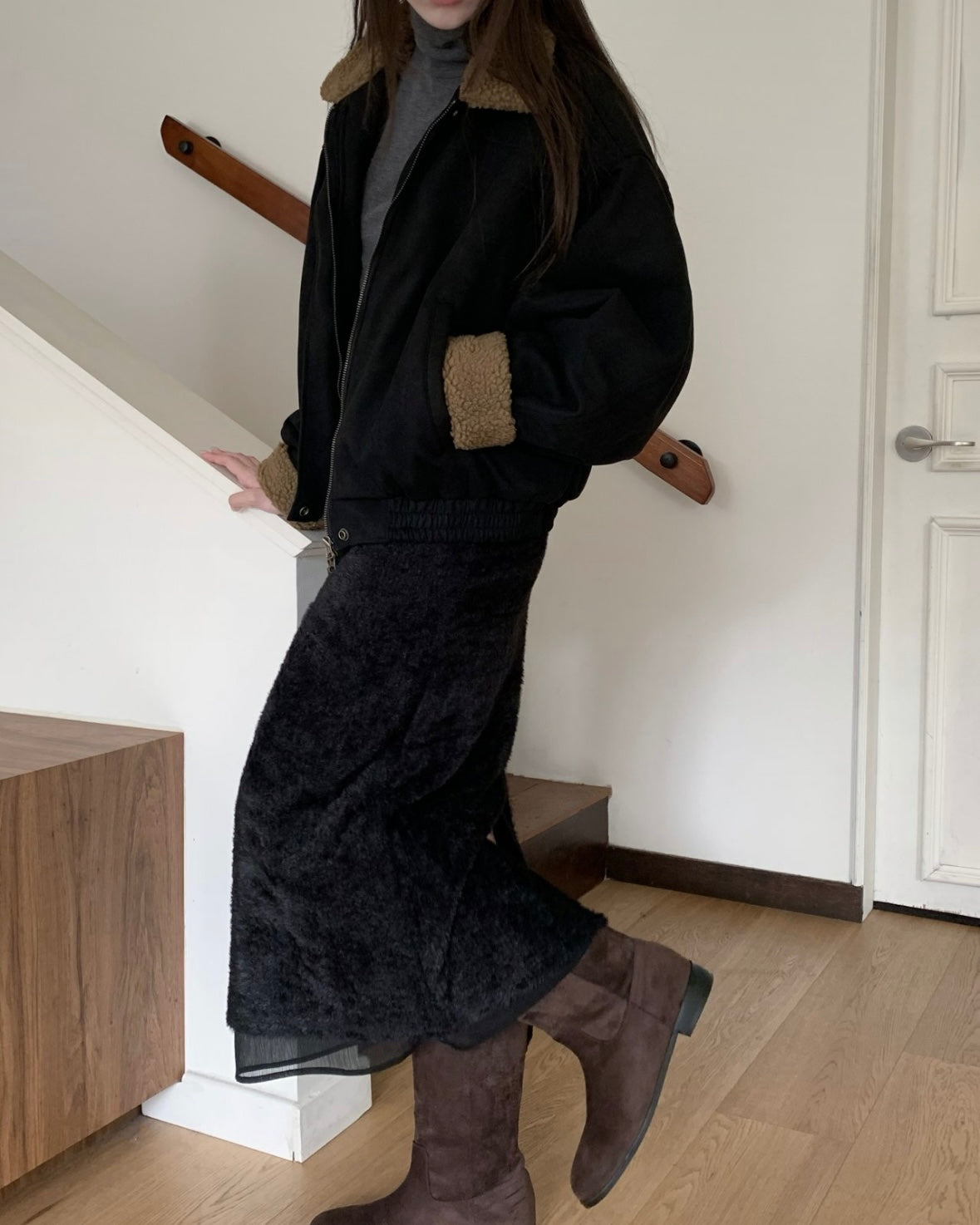 Elevate your winter wardrobe with our Sherpa Suede Bomber Jacket, the ultimate cozy essential for effortless cold-weather styling. The fully sherpa-lined interior keeps you toasty on the chilliest days, making it your go-to layer all season long.