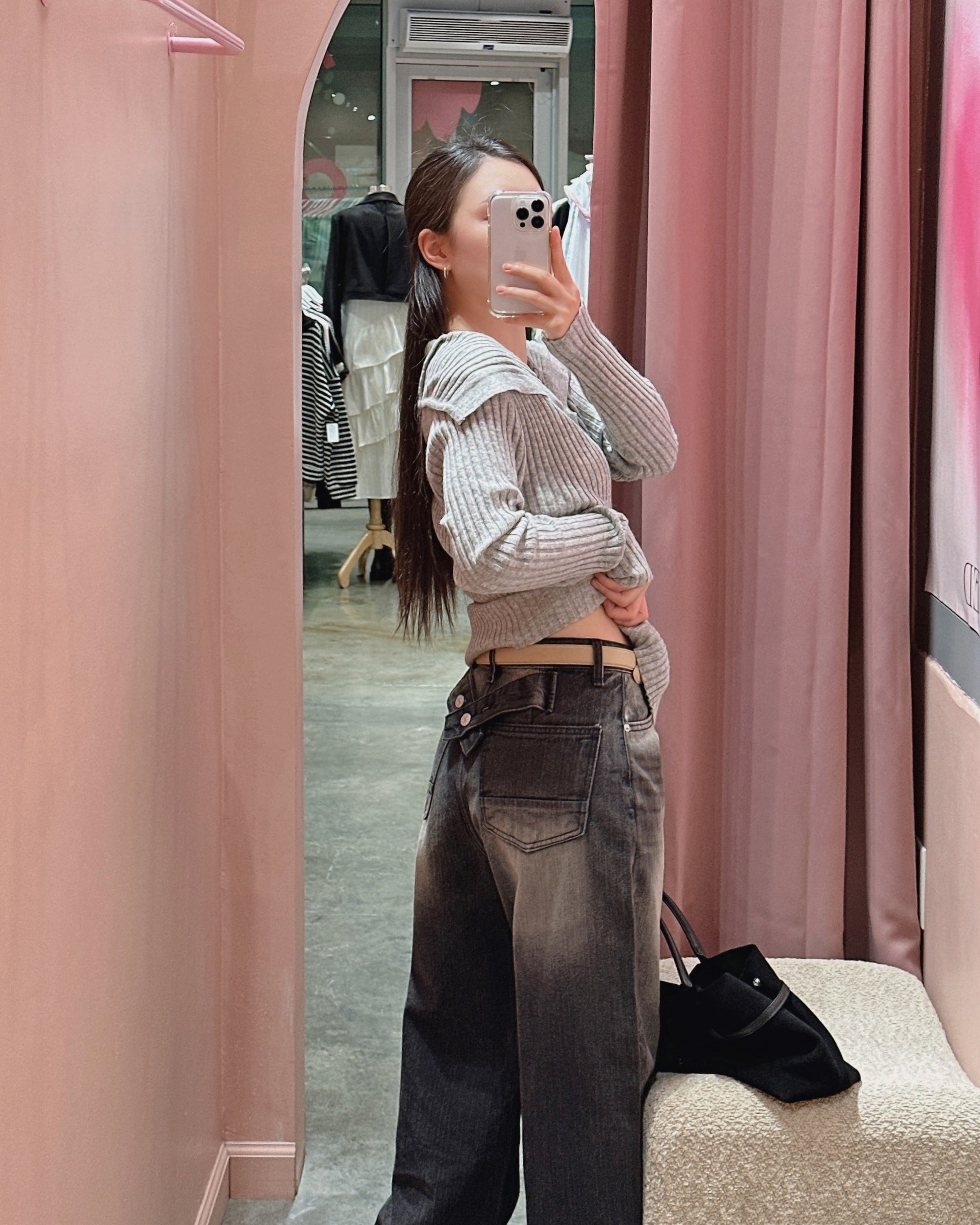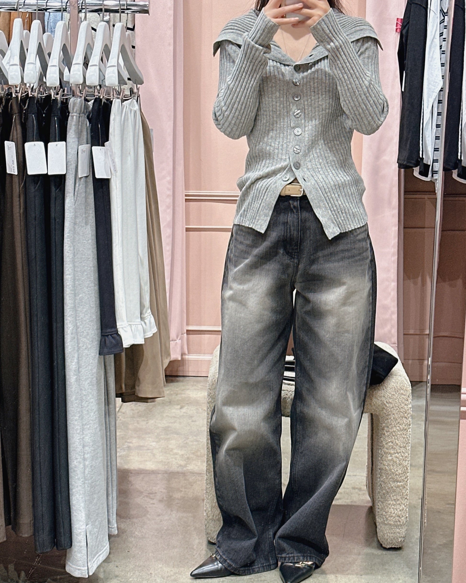 These wide-leg jeans feature a soft faded wash for a worn-in, effortless vibe, while the unique snap-button detail at the back adds a bold, unexpected twist. Crafted from premium denim with just the right amount of structure, they sit comfortably at the mid-to-low rise and drape beautifully for a flattering silhouette.